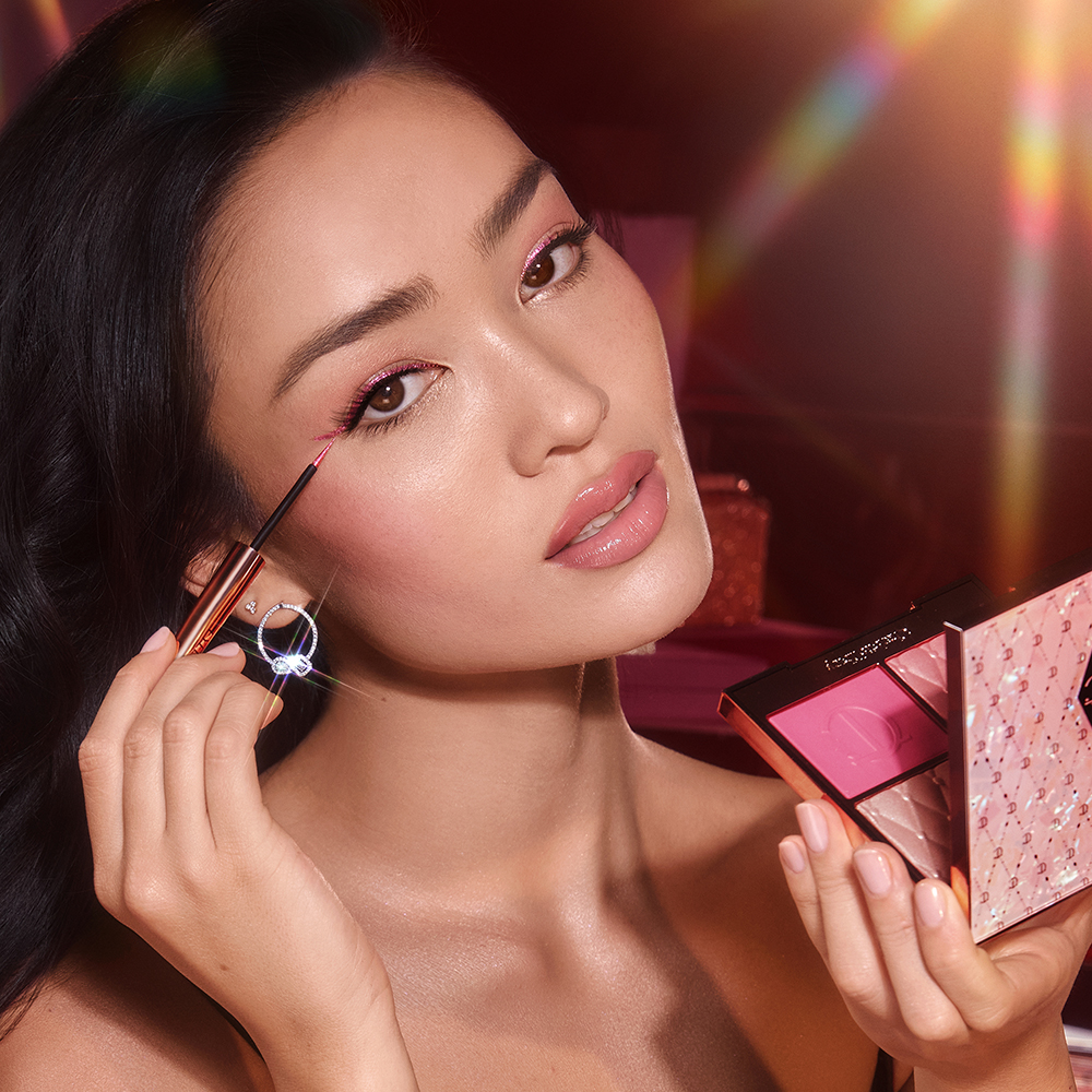 Tip: For a trendy touch, you can experiment with a pink winged eyeliner using a liquid or gel liner.